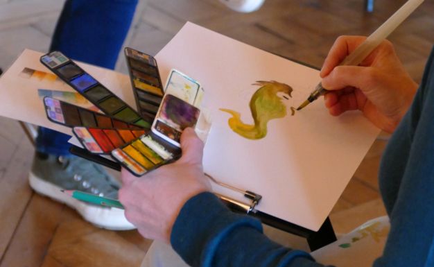Initiation à l'aquarelle dans les salons d'apparat
