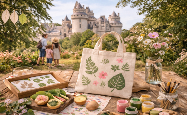 En découvrant la passion de l'Impératrice Eugénie pour les fleurs et la botanique, la visite se prolongera par un atelier créatif où petits et grands pourront décorer sacs et sacoches de motifs floraux à l'aide de feuilles, pochoirs et autres impressions végétales réalisées à partir de légumes.